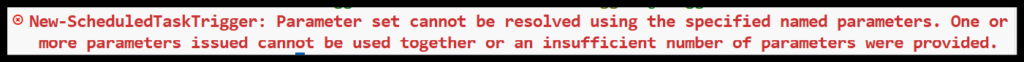 New-ScheduledTaskTrigger : Parameter set cannot be resolved using the specified named parameters. One or more parameters issued cannot be used together or an insufficient number of parameters were provided.
